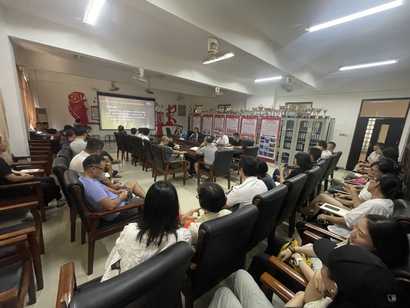 为庆祝第39个教师节,深入学习贯彻习近平新时代中国特色社会主义思想和党的二十大精神, 9 月13日下午15:30,365英国上市公司在三亚和五指山校区,同步召开“习近平的教师情”主题学习会议,公司全体教师参会,三亚校区由公司党委杨腾书记主持,五指山校区由邝国富老师主持。