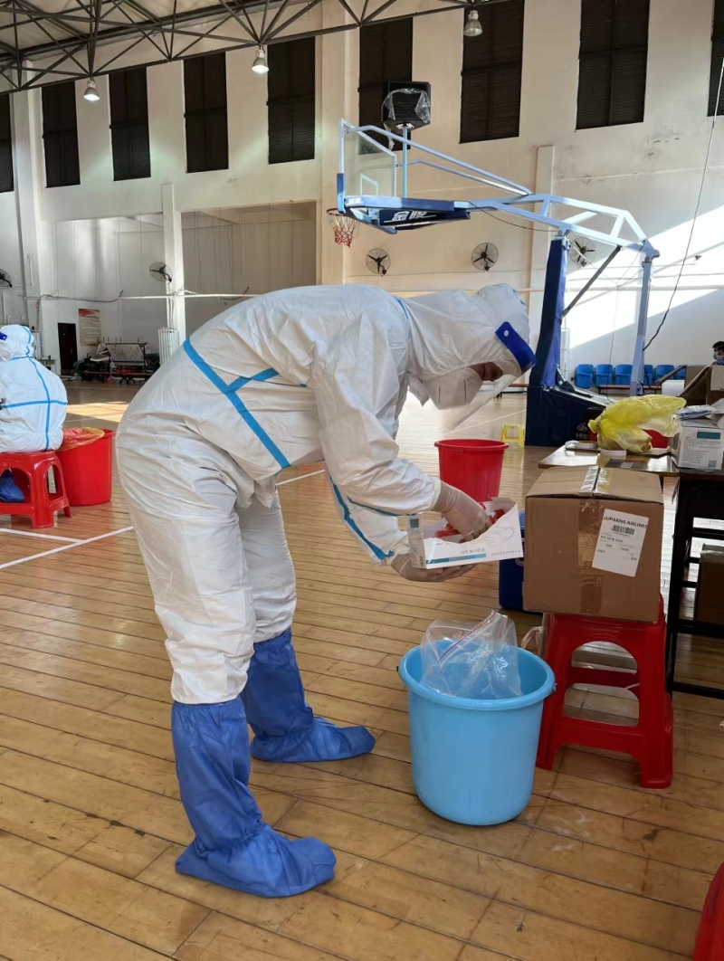 据初步统计,从四月份开始,陈子琛老师已经参加核酸志愿服务近20次,负责公司全员核酸中的核酸试管收集工作,对单管、混管(红码试管、黄码试管、绿码试管)分类整理,封箱保存,并清点每天核酸试管采集的总数量,单日完成2000多人的核酸试管收集。