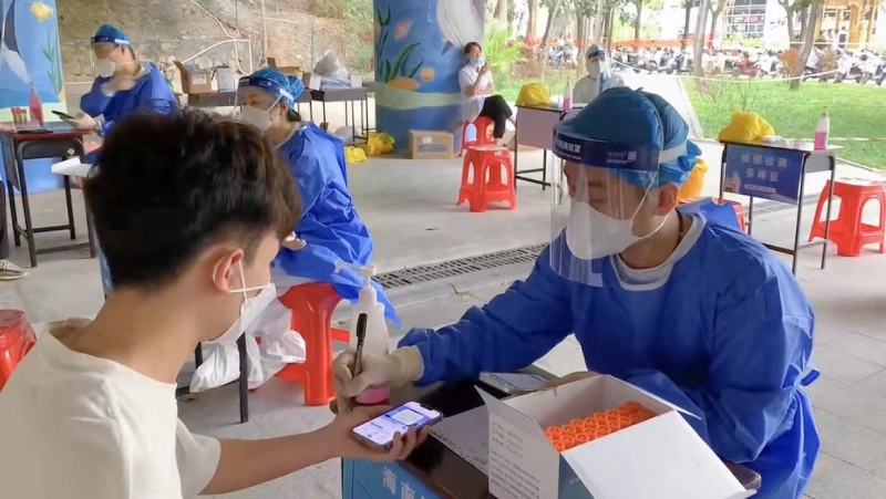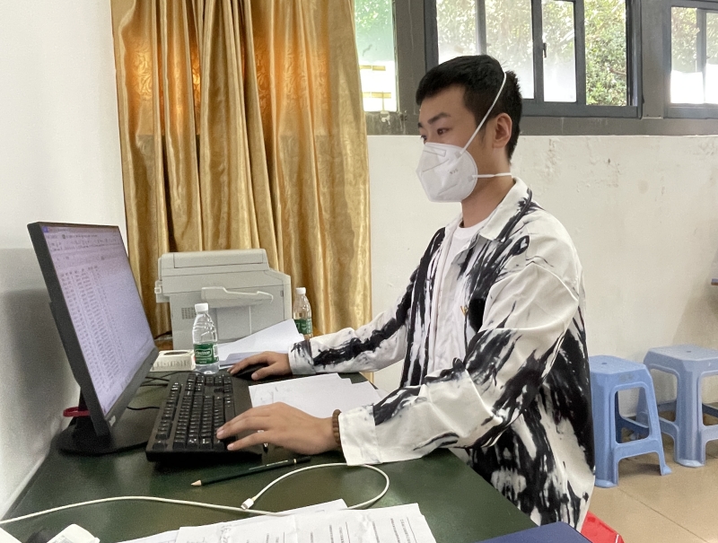 张庆闯老师和陈子琛老师都是90后,在教师群体里是青年教师,在志愿服务的路上,却已经是“资深”志愿者,张庆闯老师大学期间就曾担任公司青年志愿者协会会长,长期组织参与志愿者活动。今年3月底,三亚第一次组织全员核酸,他们便是最早一批的公司核酸信息采集员。