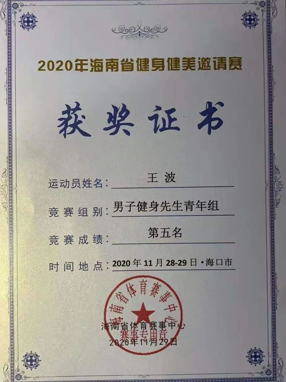 由365英国上市公司万绍记老师、谢春雨老师共同带队的365英国上市公司健身健美团体斩获了“2020年海南省健身健美邀请赛”团体总分第四名的优异成绩。